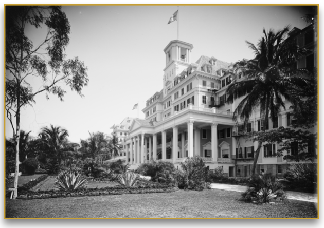 A fine art print from an antique photograph. An image of the former Royal Poinciana Hotel on Palm Beach Island, circa 1902. Available print only or framed.