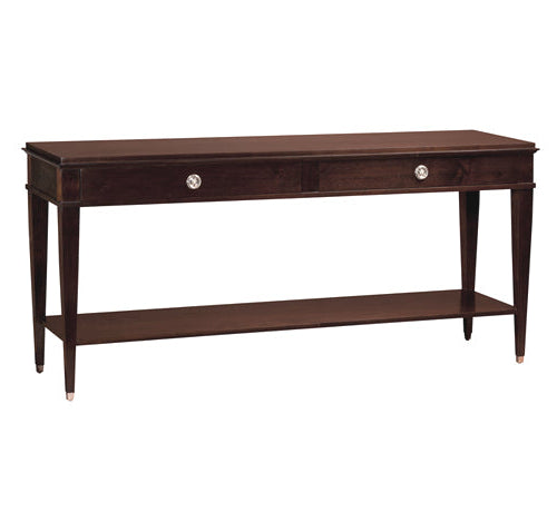 This minimalist console table features a thoughtfully balanced design with two drawers positioned on a single side, complemented by an open shelf that provides flexible display space. The floating construction creates visual lightness, allowing the piece to anchor a room without overwhelming the space. Ideal for entryways, living rooms, or hallways where you need accessible storage without sacrificing aesthetic refinement.