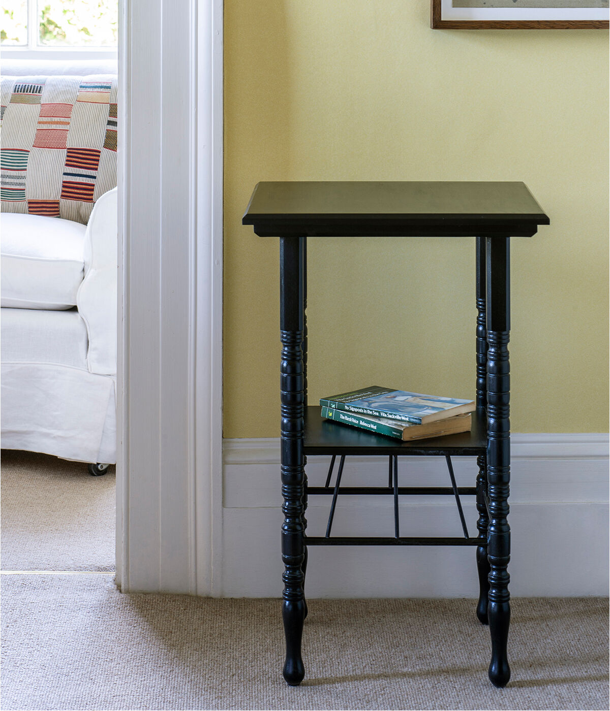 Inspired by the work of architect / designer E. W. Godwin, this side table is compact in size and harks back to the Aesthetic Movement. The Colbury Table is fashioned from a combination of solid beech wood and beech wood veneer. It has turned legs and supports.