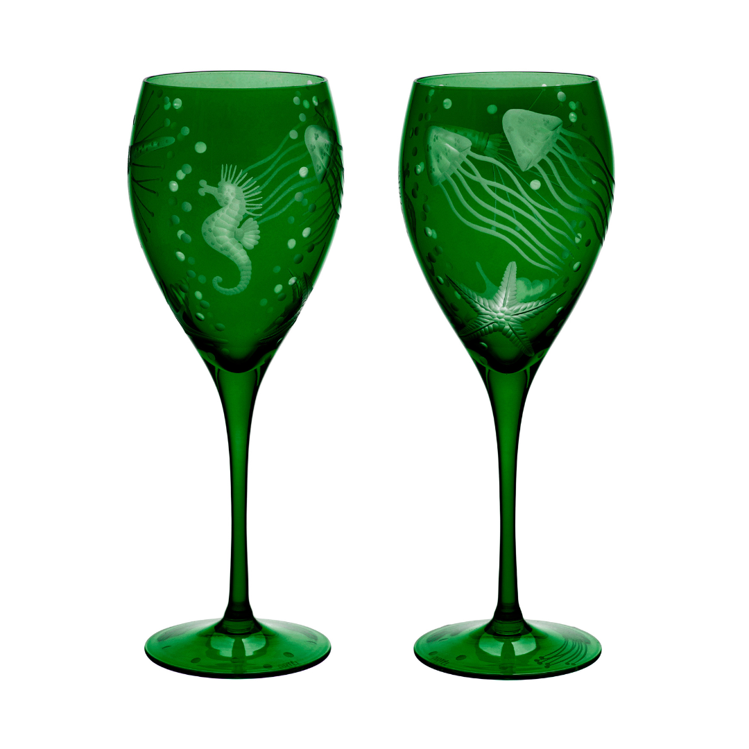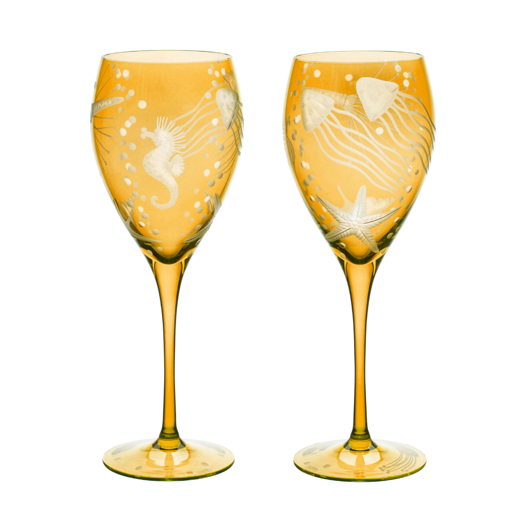 Showcasing intricately crafted illustrations of jellyfish, seahorses, and various sea life, this Wine Goblet offers generous capacity to allow your favorite wines to fully develop their flavors. Perfectly capturing nautical themes and oceanfront vibes.
